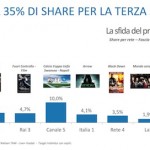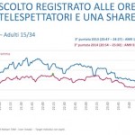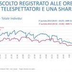 Su Rai1 la terza serata del Festival di Sanremo 2014 ha conquistato 7.673.000 spettatori pari al 34.94% (qui gli ascolti story della terza serata della kermesse – qui i dati di ieri – qui i dati della prima serata). Nel dettaglio la prima parte ha ottenuto 8.936.000 spettatori con il 34.36%, la seconda parte ha raccolto 4.017.000 spettatori con il 39.14%. La terza serata del Festival di Fazio ha fatto meglio solo delle terze serate delle edizioni flop di Ventura, Panariello e Baudo (2008).