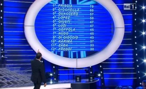 L’esibizione in duetto, infine, è stata affidata a Elena Di Cioccio e Sergio Friscia, che hanno indossato i panni di Irene Grandi e Pino Daniele. Ed è stato proprio l’attore comico a trionfare, votato dai colleghi e molto apprezzato dal giudice per una notte Enrico Brignano. Una vittoria che deve aver lasciato l’amaro in bocca a Carlo Conti, dal momento che dopo la proclamazione il conduttore ha chiesto un applauso speciale per Cicchella, avendo anche già sottolineato che nessuno degli altri concorrenti lo aveva votato…. per paura del più bravo?