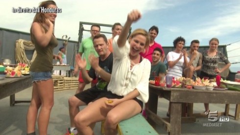 22.57: I tre apprendisti raggiungono “le tre grazie. Grazia, Graziella e…”, scherza (ma neanche tanto) Mara. La Isla Desnuda, dunque, a questo punto è al completo. La conduttrice spiega loro che saranno spiati dai dieci naufraghi e, uno alla volta, li raggiungeranno di settimana in settimana. Ma sulla vera Isola, però, c’è posto solo per quattro di loro.