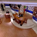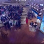 La scenografia, come si vede bene nella foto in alto, è la cosa più orrenda che si sia mai vista in TV. Non si capisce il senso estetico di tutte quelle righe orizzontali di compensato che sembra le abbiano staccate dalle cassette della frutta. Il colpo d'occhio sull'interno studio è davvero devastante, ancora più brutto di quanto abbia visto ieri in TV. Devo dire che tutte quelle righe danno anche fastidio alla vista ed in studio le luci sono molto basse e i volti delle persone tendono al grigio. Ma hanno bisogno di risparmiare anche sulla corrente elettrica a Mediaset? Stanno messi molto male allora...