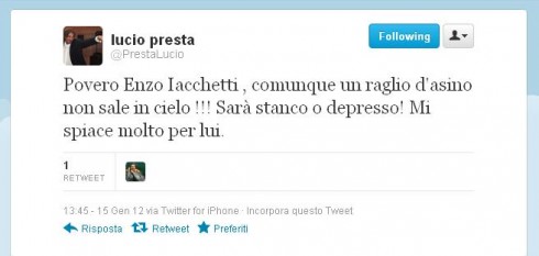 A Enzo Iacchetti risponde Lucio Presta da Twitter: