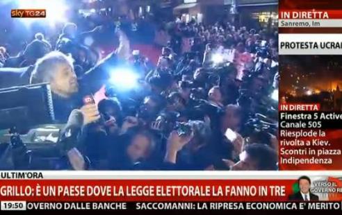 BEPPE GRILLO AL FESTIVAL DI SANREMO 2014. COMIZIO FIUME CONTRO LA RAI