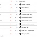 Su La7 L’Aria che Tira è il programma streammato più volte (LS) mentre Propaganda Live è il programma streammato per maggior tempo (TTS). Coincidenza a Warner Bros Discovery tra i programmi più visti sul lineare e sul web: Fratelli di Crozza segna 27,3 milioni di minuti battendo Bake Off (15,2 milioni di minuti). Terzo posto per Matrimonio a Prima Vista (6,3 milioni).