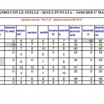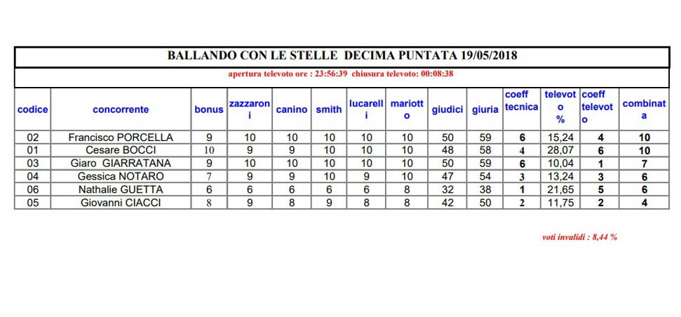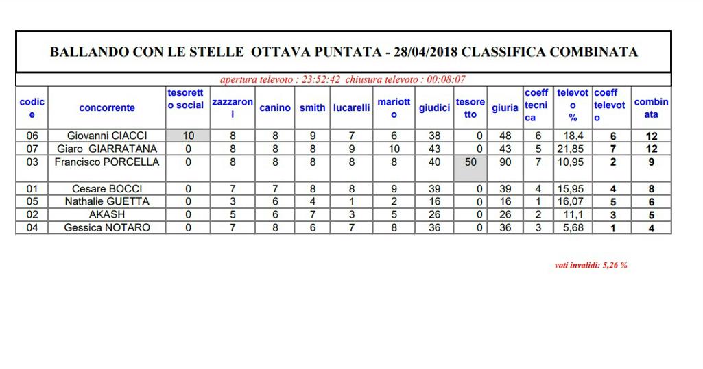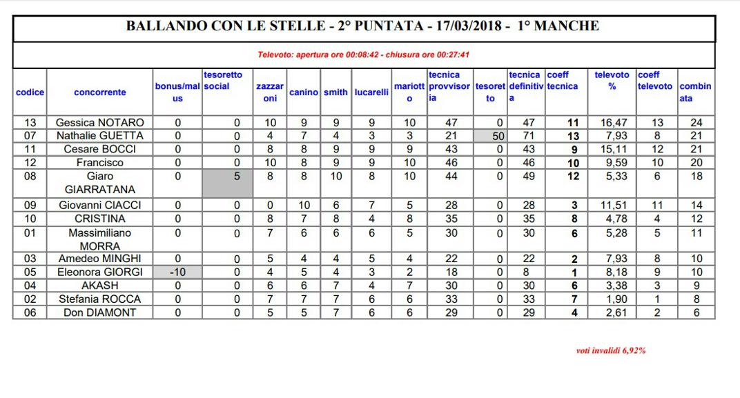 Un percorso in parte simile è toccato a Giovanni Ciacci e Raimondo Todaro: nella prima puntata erano al terzo posto nella classifica del televoto con l’11.51%, nella seconda con il 10.45%, dopodiché la loro popolarità è salita fino ad arrivare al 23.59% nella quinta puntata, quella in cui Ciacci ha ballato un tango “scandaloso” ricevendo 0 da Mariotto ed ha poi avuto un malore. Lo stylist di Detto Fatto da quel momento è stato sostenuto sempre dal pubblico, crollando solo nella finale, che lo ha visto penultimo in classifica con l’11.75%, seguito solo da Giaro Giarratana (che ballava con Lucrezia Lando).
