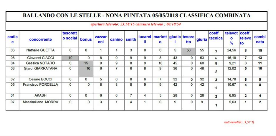 Un exploit da segnalare è quello di Massimiliano Morra (in coppia con Sara Di Vaira), il più votato nella terza puntata – quella successiva al suo incidente d’auto (aveva avuto 0 dalla giuria) – con il 25.57%, nella quarta con il 16.69% e nella sesta con addirittura il 35.79%, registrando la percentuale più alta dell’intera edizione; Akash, in gara con Veera Kinnunen e normalmente ai margini della classifica, è invece volato al primo posto nella settima puntata con il 21.15%.