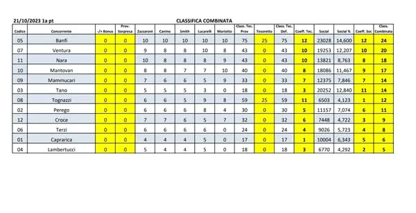 1. Nara e La Rocca: 10+10+10+10+10= 50 punti