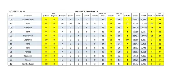 Un parere, quello dei giudici, che ha trovato conferma nelle prime due posizioni del pubblico social, visto che Wanda Nara e Pasquale La Rocca sono saliti al vertice con il 28,507% delle preferenze pari a 55.869 voti. Dietro di loro Simona Ventura e Samuel Peron, fermi però al 19,801% con 38.807 voti totali. Terzo posto per Teo Mammucari e Anastasia Kuzmina (17,076% – 33.467 voti), seguiti nell’ordine da Lorenzo Tano e Lucrezia Lando (13,385% – 26.232 voti), Sara Croce e Luca Favilla (9.512% – 18.642 voti), Giovanni Terzi e Giada Lini (7,435% – 14.572 voti) e dai ‘ripescati’ Rosanna Lambertucci e Simone Casula (4,284% – 8.397 voti). Di conseguenza, la classifica combinata – che ha portato all’eliminazione delle ultime tre coppie – è stata la seguente: