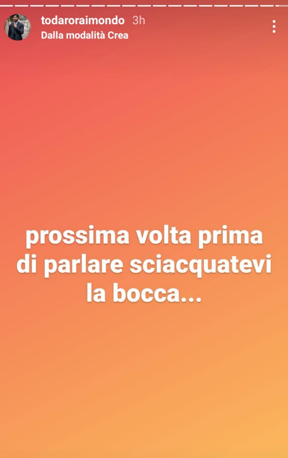 ha sbottato Todaro, che non solo ha negato la relazione con la Isoardi, ma ha ‘provocato’ Conticini, invitandolo a prendersi le sue responsabilità per la mancata vittoria raggiunta, nonostante fosse il favorito. “Prossima volta sciacquatevi la bocca prima di parlare”, aggiunge il ballerino – che ieri è apparso molto seccato per la sconfitta – nelle stories successive. Poco fa, è arrivata la controreplica di Paolo, che ha rispedito al mittente le accuse e ha aggiunto che forse il più nervoso per il risultato di ieri sera sia proprio lui: