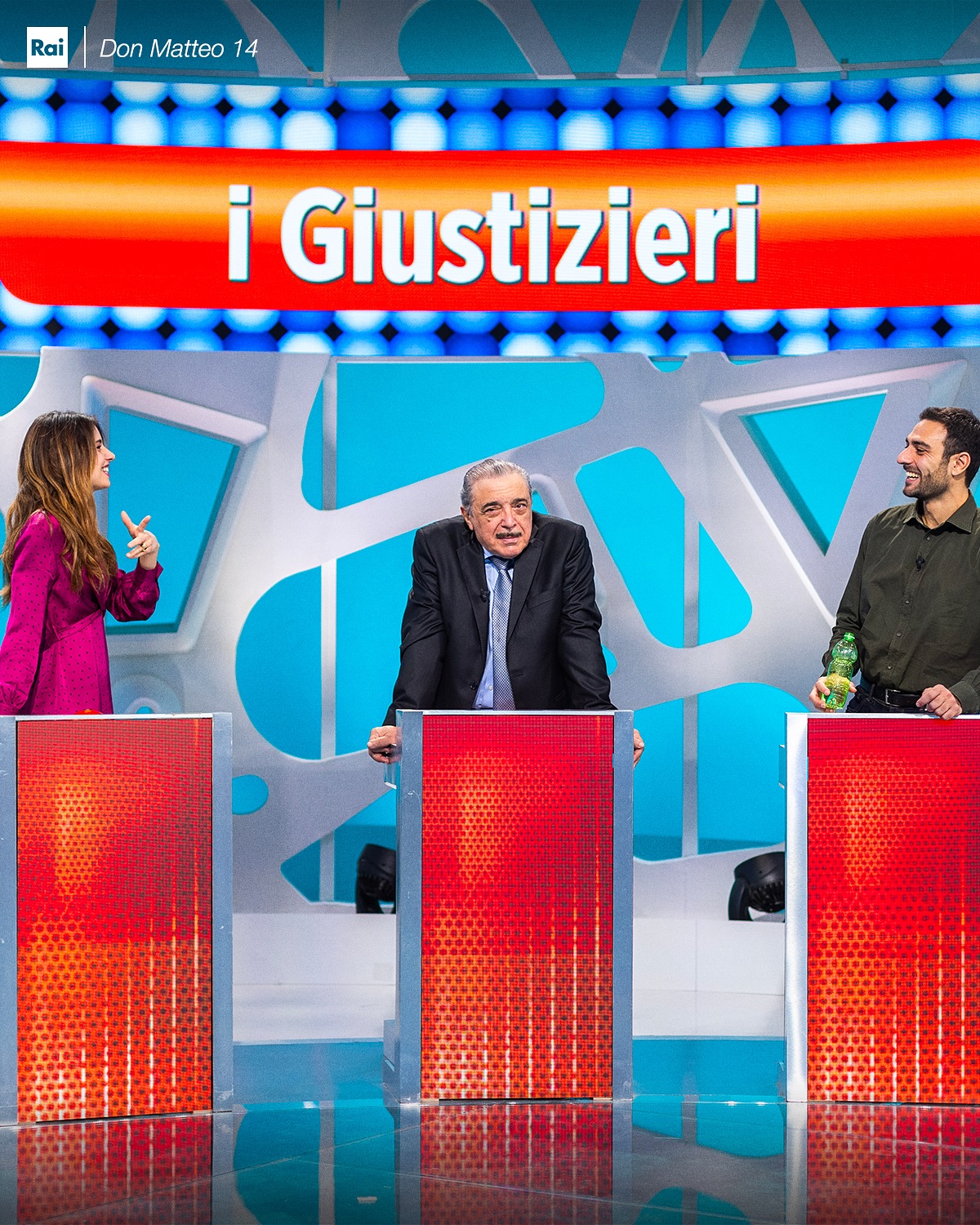 Benchè quest’anno il programma del preserale di Rai 1 sia stato condotto da Pino Insegno, nell’odierna puntata di Don Matteo 14 sarà l’ex padrone di casa Marco Liorni a porre le domande ai concorrenti, in quanto le riprese si sono svolte diverso tempo fa (del resto la serie doveva andare in onda la scorsa primavera). La squadra formata dai tre personaggi sarà quella dei Giustizieri.