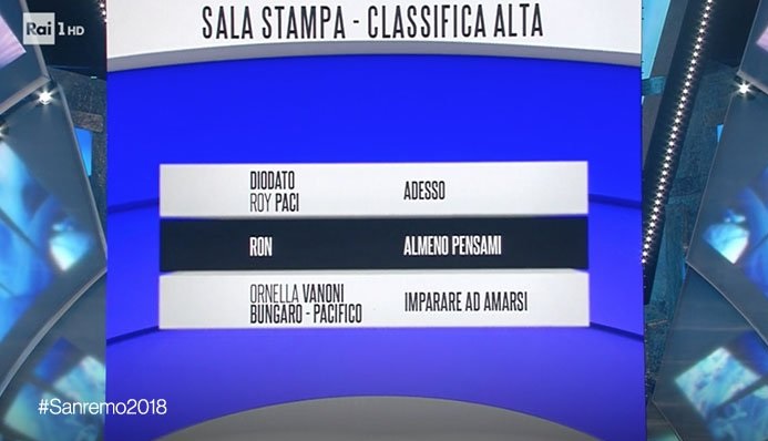 Sanremo 2018, classifica seconda serata