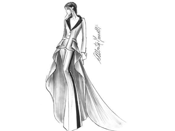 Anna Foglietta, uno dei volti del DopoFestival, sarà vestita da Alberta Ferretti, che ha creato per lei degli smoking maschili sui toni del bianco e del nero per conferirle uno stile androgino.