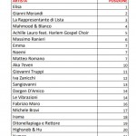 Al termine della quarta serata del Festival di Sanremo è stato annunciato solo il podio relativo alla gara delle cover, vinta – non senza polemiche – da Gianni Morandi e Jovanotti. I due hanno staccato tutti al televoto con oltre il 19% delle preferenze mentre sono secondi per le altre giurie. Oggi è stata finalmente resa nota l’intera classifica, che ricordiamo essere scaturita dal voto congiunto del Televoto (34%), della Giuria della Sala Stampa, Tv, Radio e Web (33%) e della Demoscopica 1000 (33%). La trovate a seguire, mentre qui ci sono le nostre considerazioni sulla serata delle cover.