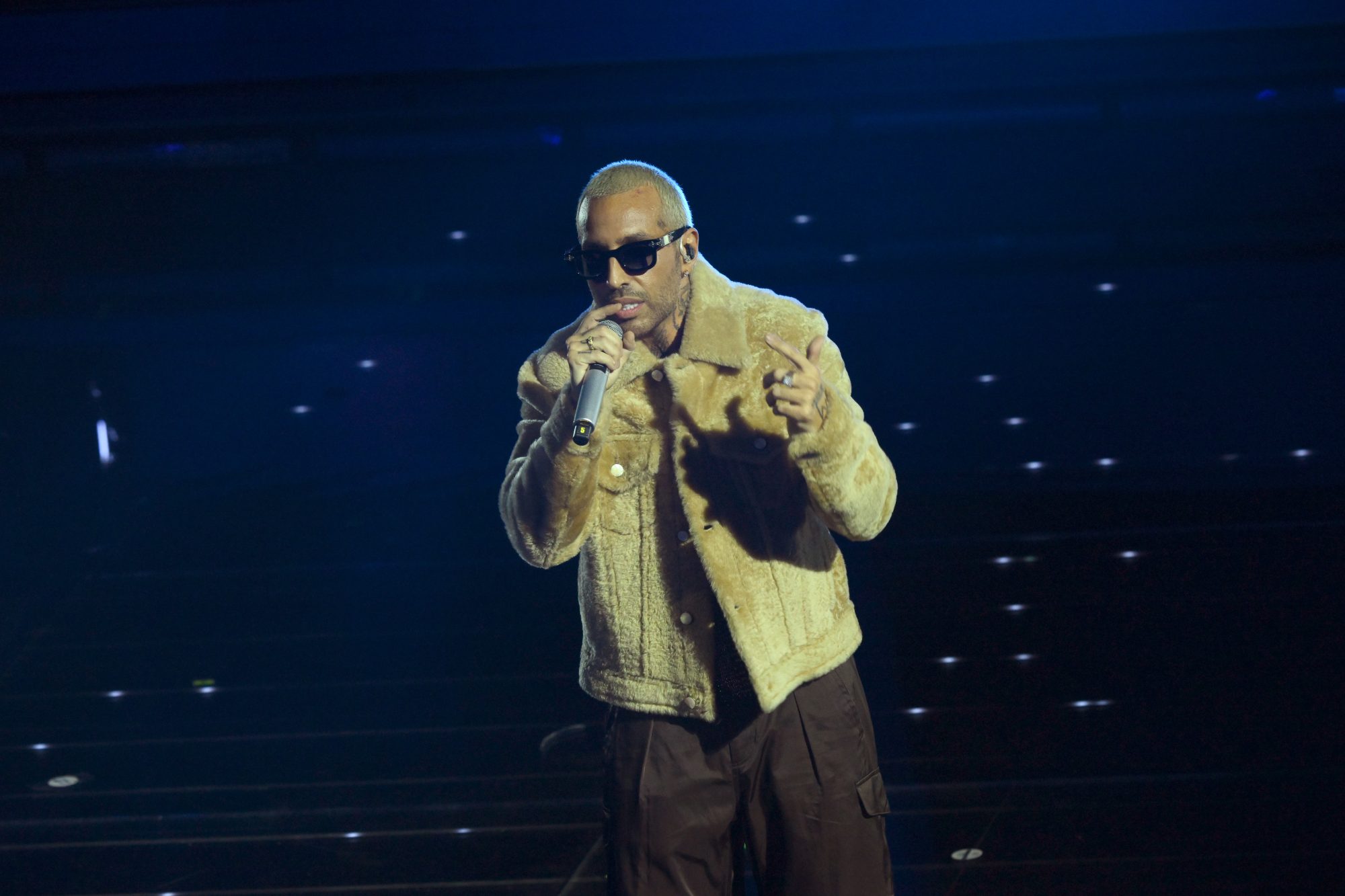 Un Lapo vestito d’azzurro “in omaggio alla Costa Azzurra”, annuncia Samurai Jay, che regala il primo total white della serata. Il brano è Ossessione. A fine esibizione, in cima alla scala, appare Belen Rodriguez.