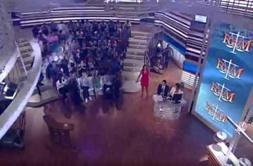 La vecchia scenografia, come abbiamo già scritto, è stata del tutto smantellata e ricostruita da Marco Calzavara con un impianto a 360 gradi nel quale la conduttrice può muoversi liberamente, e del quale le telecamere sono diventate parte integrante. Oggi lo studio degli Elios che ospita Forum somiglia, secondo i detrattori, di più a quello di uno show di intrattenimento che ad un’aula di tribunale, avendo perso in questo modo la sua funzione originaria.