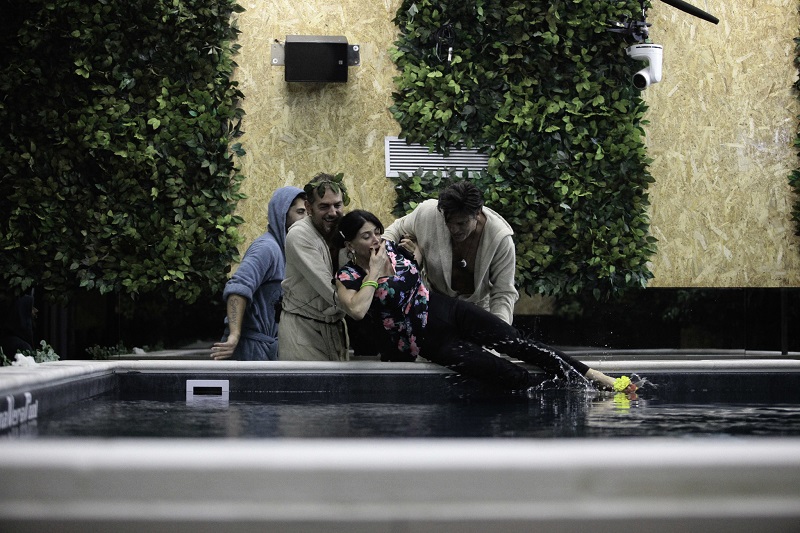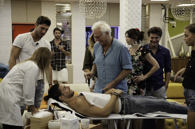 Dopo il bagno collettivo di Ivana e Carmen (vedi foto), il Grande Fratello manda un comunicato ai ragazzi: in casa sta per arrivare un’estetologa, che insegnerà loro a fare una particolare maschera per il viso. Ignazio e Luca fanno da cavie, mentre tutti ascoltano la lezione. La più attenta è Giulia, che continua a far domande.