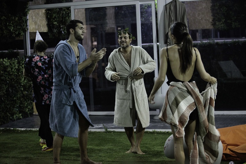 Arriva il momento della cena e, ancora una volta, Simona e Cristiano litigano per il testo della canzone di Battisti e Mogol. A mezzanotte i ragazzi festeggiano il compleanno di Daniele con un toga party, anche se a un certo punto il gruppo si divide. In giardino rimangono i “giovani”; Simona e Cristiano vanno a letto. La serata si conclude con uno scherzo a Carmen Di Pietro, che viene buttata in piscina. Lei esce e, ancora vestita, si fa una doccia.
