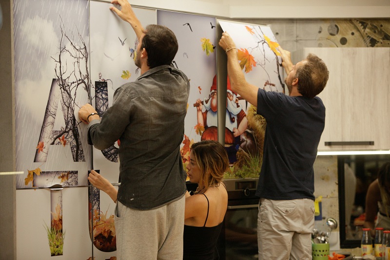 Il Grande Fratello offre un passatempo ai concorrenti: assieme ad un cesto di funghi da cucinare, regala loro una nuova carta da parati per cambiare aspetto alla cucina. Tutti insieme iniziano a darsi da fare: ora sul frigorifero non c’è più il logo del programma, bensì uno scenario decisamente autunnale con foglie che cadono e scritte.