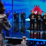 Che Baby Alieno non potesse farcela, è stato chiaro fin da subito: impossibilitato a muoversi, gigantesco, si è esibito restando immobile al centro del palco, chiedendo poi di lasciare lo studio appena terminata la performance (il costume si è anche rotto). Un problema che non poteva non essersi palesato già in fase di prove, ma poco importa, perchè il colpo di scena è stato assicurato; peccato solo che lo svelamento si sia consumato troppo velocemente, sui titoli di coda, e i quattro non abbiano avuto modo di commentare e dire nulla.