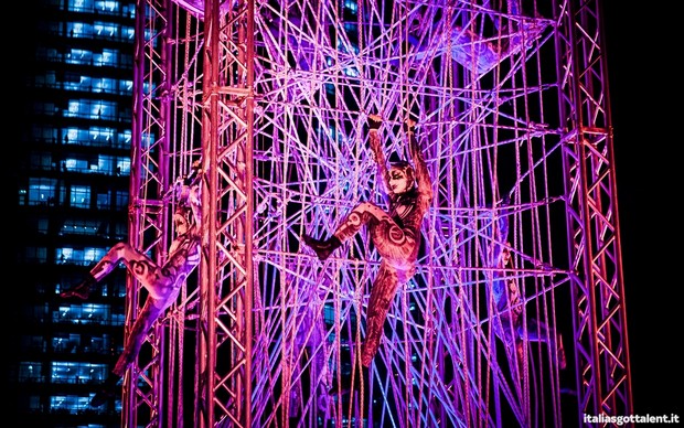 – le Extreme Theatre Company, che per mettere in scena il loro numero stile Spiderman hanno portato i giudici fuori dagli studi, nel gelo della notte milanese;