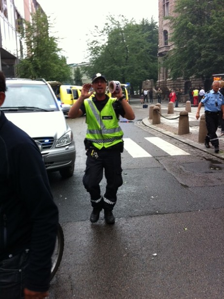 Nel giorno del terrore, gli anchormen norvegesi mostrano un’invidiabile compostezza; il tono delle loro parole non nasconde l’intenzione di cavalcare la concitazione del momento, piuttosto comunica una esplicita volontà di dominare le emozioni per riportare al pubblico la semplice cronaca di quelle terribili ore di sangue. Sullo schermo scorrono le immagini di una capitale colpita al cuore, con le persone ferite e le auto della polizia che sfrecciano impazzite. Le sirene dei soccorsi si sovrappongono come in un concerto spaventoso, duettano con le voci ferme dei cronisti. Talvolta le sovrastano.