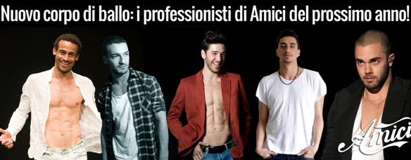 Sulla pagina facebook di Amici di Maria De Filippi campeggia la foto (potete vederla sotto) del nuovo corpo di ballo maschile previsto per la tredicesima edizione. A comporlo Amilcar Moret Gonzalez (già presente quest’anno), Sabatino D’Eustacchio (concorrente della terza edizione del talent), Michele Barile (concorrente di Amici 9), Marcello Sacchetta e Santo Giuliano (ex concorrente, dell’edizione 2006/2007).