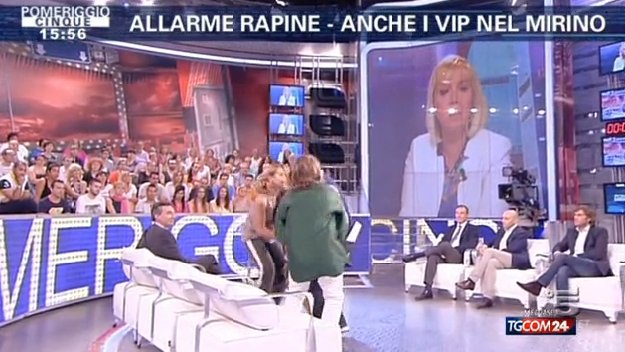 E’ successo oggi alle 15:55 negli studi di Pomeriggio Cinque, mentre si parlava di furti nelle case dei famosi che, col tempo, si stanno diffondendo sempre di più: Ana Laura Ribas, invitata a raccontare la sua recente brutta esperienza, sviene improvvisamente dopo aver fatto un cenno alla conduttrice e chiesto un bicchiere d’acqua.