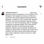 “Non ti vergogni a seguire il Grande Fratello Vip? Dove alcuni chiamati tali sono VIP perché hanno fatto vedere la patata senza mutande al Festival di Venezia o cose simili. Un branco di inutili che si credono VIP. Ma ti rendi conto! Mah. Continua pure a dire cattiverie contro di me se ti fa stare bene“.