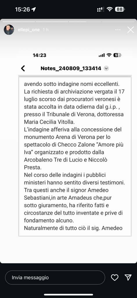 Presta, archiviata l'indagine per la concessione dell'Arena di Verona, preannuncia un'azione legale contro Amadeus