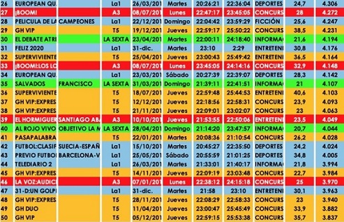 Auditel Spagna: i programmi più visti