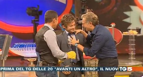 A poche ore dalla prima puntata di Avanti un altro, il nuovo preserale “tutto italiano” di Canale 5 condotto da Paolo Bonolis con la partecipazione di Luca Laurenti, il TG5 s intrufola alle registrazioni e mostra le prime immagini dello studio. Uno scambio di favori che il telegiornale di Clemente Mimun spera di vedere ricompensato da un ottimo traino all’edizione serale. Insomma, il TG5 traina Avanti un altro perchè Bonolis possa trainare adeguatamente il TG5.