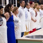 L’unico a lasciarsi abbattere dai bagels – troppo “stranieri” e dunque lontani dai suoi gusti – e dalla complicata zuppa inglese rivisitata di Ernst Knam, che è stata preparata a scatola chiusa (ovvero senza che i concorrenti potessero vedere quella originale), è stato Claudio. Da sempre emotivo ed insicuro, ma dotato di una buona manualità, stavolta ha mollato e dunque ha affrontato le due prove senza slancio, senza crederci, il che ha portato i giudici ad eliminarlo e rimandarlo a casa. Ma gli altri non se la sono passata meglio, soprattutto la simpatica Enrica, che a fine puntata ha tagliuzzato in mille pezzi la ricetta di Knam. Difficile anche solo da leggere.