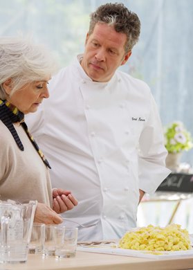Ernst Knam, ripercorrendo in apertura quanto accaduto la scorsa settimana, ha ribadito di essere stato deluso da tutti ma in particolare proprio da Elisa, giudicata troppo lenta, che ha rischiato seriamente di tornare a casa e si è salvata solo perché Elena aveva fatto peggio di lei. La diciottenne milanese, nonostante la paura le si leggesse negli occhi, non ha mollato e se l’è cavata egregiamente in entrambe le prove di ieri sera, sfilando l’ambito grembiule blu ad Emanuele e riscattandosi agli occhi del “maestro”.