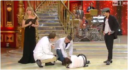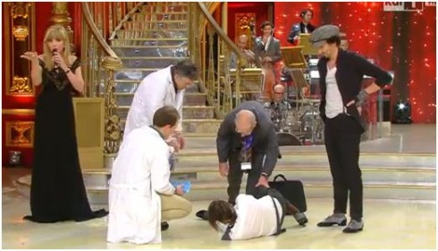 Intanto, sui social network si continua a commentare l’episodio di ieri sera. Secondo alcuni maligni, si sarebbe addirittura trattato di una montatura, di una messinscena orchestrata proprio durante la finalissima di Italia’s Got Talent 5 (vinta dal ventriloquo Samuel Barletti, ndDM) I sostenitori di questa tesi si domandano come mai la conduttrice non abbia mandato la pubblicità, come solitamente accade in questi casi, e si sia invece messa a raccontare il tutto in diretta.