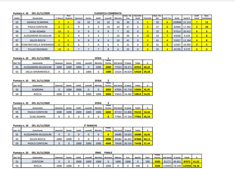 Al termine della prima manche della finalissima, il podio della classifica vedeva primeggiare Daniele Scardina, seguito da Paolo Conticini ed Elisa Isoardi. Il primo a lasciare la gara è stato Tullio Solenghi, ultimo per la giuria ma più votato sui social della Mussolini. Il vincitore Gilles Rocca soltanto quinto. Nelle tre sfide ad eliminazione diretta, Alessandra ha battuto Costantino sia coi voti della giuria, sia coi social. Elisa Isoardi, incassato un sonoro 5-0 dai giurati, ha perso contro Conticini pure sui social. Pari merito per la giuria tra Scardina e Rocca, con quest’ultimo votato dal 54% dei telespettatori. Nella sfida a tre, la terza classificata Alessandra Mussolini ha ottenuto il 18,45%. Gilles Rocca 44,11%, Paolo Conticini 37,44%.