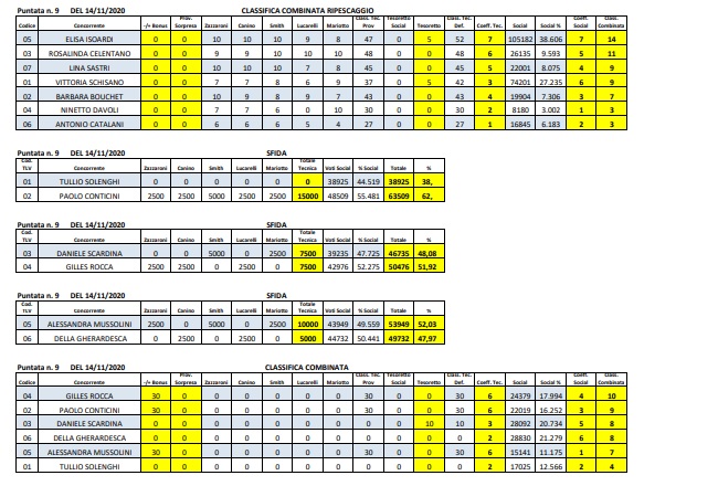 La nona puntata, con la riammissione in gara dei ripescati Isoardi e Todaro, ha visto trionfare ancora una volta, dal punto di vista della classifica, Gilles Rocca (ma sui social Costantino è il primo mentre Rocca è terzo). Il podio è stato completato da Paolo Conticini e Daniele Scardina, anche se l’attore (16,2%) è stato meno votato sui social rispetto al pugile (secondo con il 20,7%). Nelle tre sfide dirette, Costantino Della Gherardesca avrebbe battuto Alessandra Mussolini, contando sui social, senza il voto della giuria tecnica.