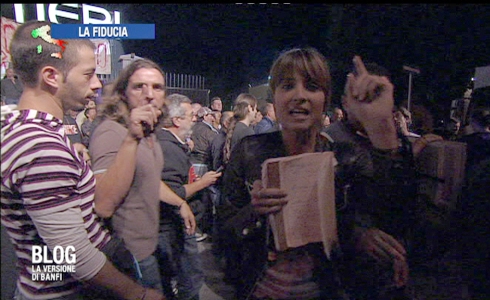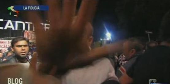 Quando si incazzano, gli indignados muovono pure le mani. Ne sa qualcosa la giornalista Monica Giandotti, che stasera si è trovata in mezzo ad una rivolta durante il programma Blog – La versione di Banfi, in onda su Rete4. La giovane inviata era in collegamento con Genova per raccontare in diretta la situazione precaria dei lavoratori della Fincantieri, quando gli stessi operai hanno iniziato a manifestare il loro malcontento con toni accesi e incivili. Ne è scaturita una rissa.