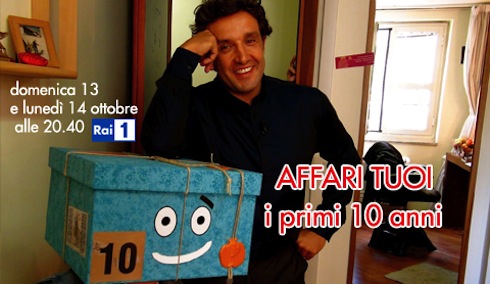 E pensare che nell’autunno del 2003 erano state annunciate soltanto 30 puntate sperimentali, alle quali ne sono seguite oltre 1700, trasmesse in questi 10 anni di programmazione. Era il 13 ottobre 2003 quando Paolo Bonolis debuttava nell’access prime time di Rai1 con Affari Tuoi. Il conduttore approdava in Rai con due obbiettivi importanti: rilanciare la domenica pomeriggio con una nuova edizione di Domenica in e, soprattutto, tentare di arginare il successo di Canale5 e di Striscia la notizia, sino ad allora regina incontrastata della fascia che precede il prime time.
