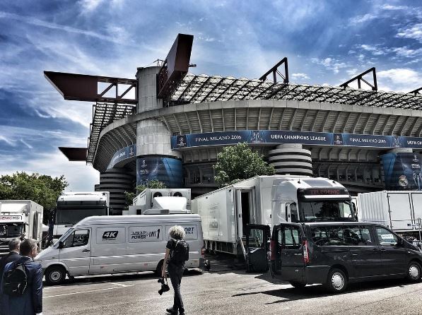 Vi siete mai chiesti come funziona la regia televisiva di un grande evento come la finale di Champions League? Stavolta la curiosità sarà esaudita: ve lo sveliamo noi. A poche ore dall’atteso match tra Real e Atletico Madrid, siamo entrati nel Tv Compound dello stadio di San Siro, un’area blindatissima che si estende eccezionalmente per 13 mila mq ed ospita l’intero comparto tecnologico e di elaborazione del segnale tv, ma anche i generatori di corrente necessari ad accendere (nel vero senso della parola) la grande serata di calcio. In particolare, abbiamo raggiunto il truck di Mediaset che ospita la regia tv tradizionale della manifestazione, affidata a Giorgio Galli.