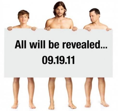 A proposito di Due uomini e mezzo, per la nuova serie che andrà in onda in autunno negli Stati Uniti, Ashton Kutcher compare “seminudo” sulla locandina, assieme ad altri due protagonisti Jon Cryer e Angus Jones. Il marito di Demi Moore, che ha sempre dichiarato di non aver problemi a mostrarsi senza veli, sostituisce Charlie Sheen, dopo che l’attore a causa di seri problemi comportamentali è stato cacciato dalla produzione.