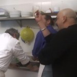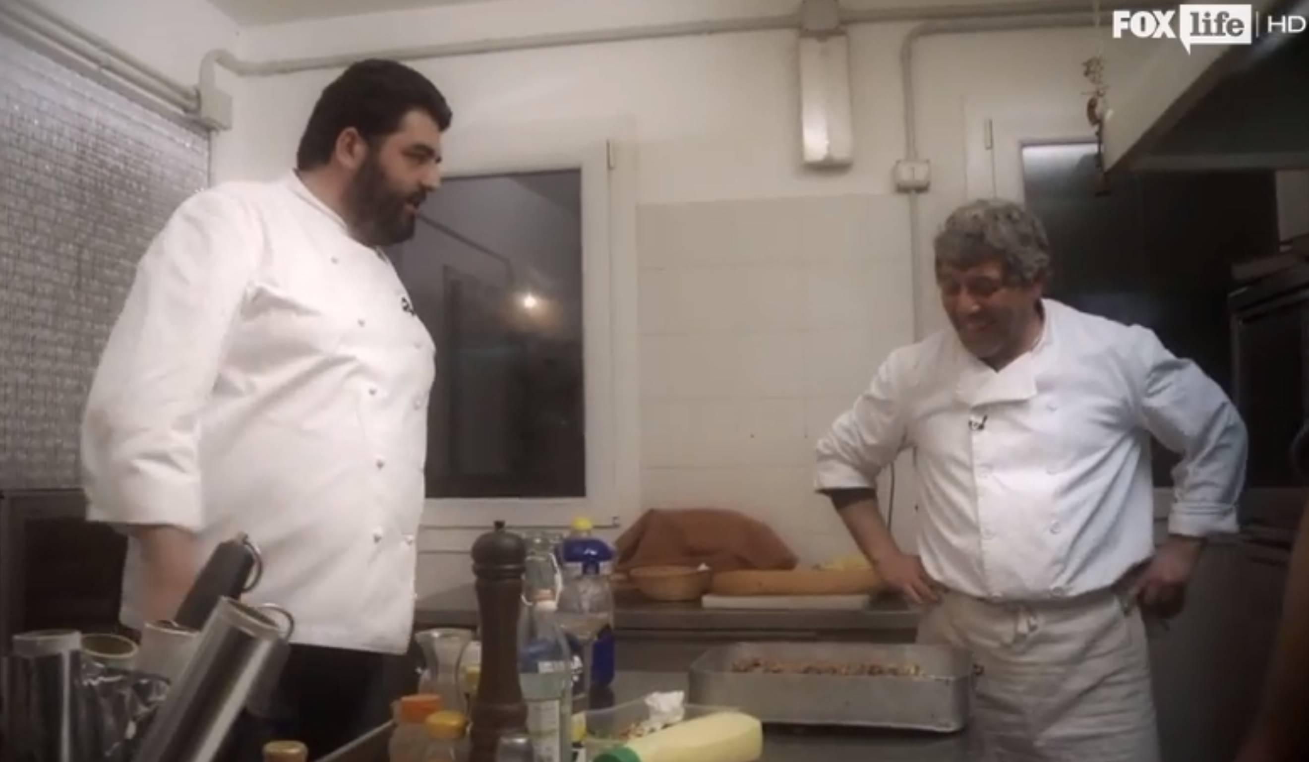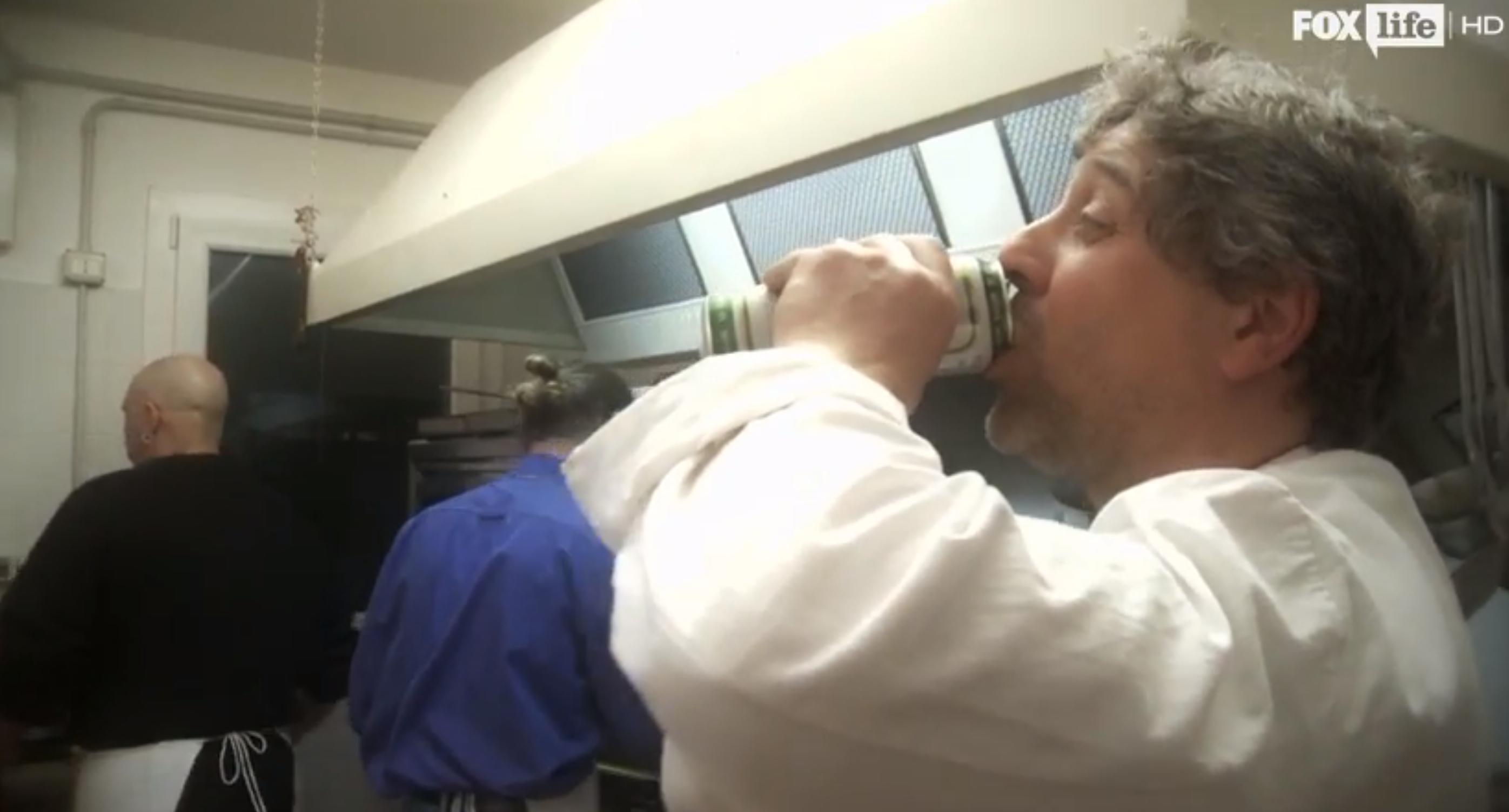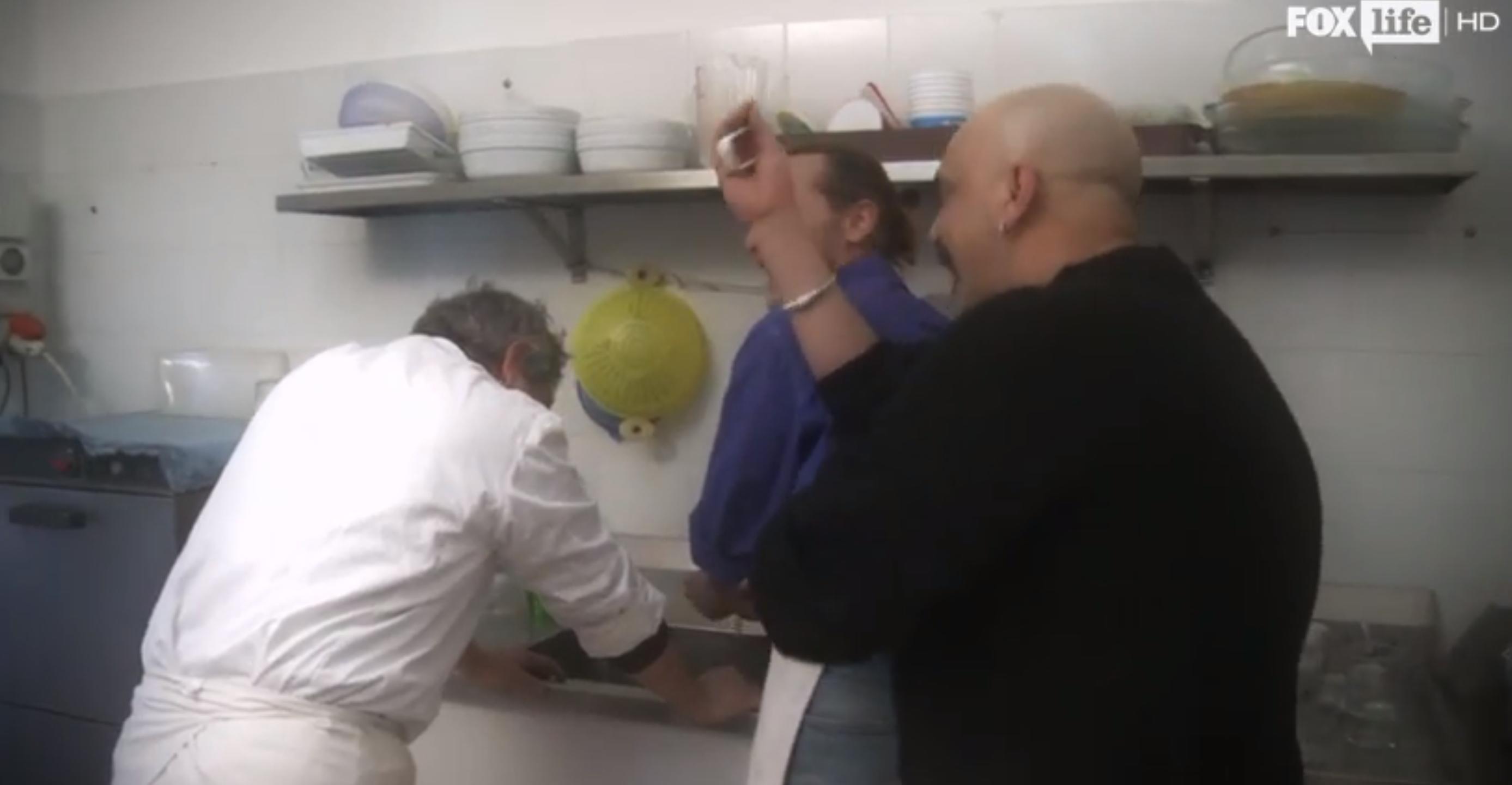 Prima di tutto, la vecchia signora è un uomo. E ha degli amici in cucina con lui. Prendete tre uomini goliardici e metteteli in una cucina. Poi abbassate le luci, alzate il volume dello stereo, iniziate a fare il trenino di Capodanno su AEIOU…Y e avrete l’atmosfera della cucina dell’osteria Vita Nova. Balletti, birrette scolate in cucina direttamente dalla lattina, padelle usate come piatti da cui “inforchettare” gli spaghetti e le mani, quelle dello chef, usate per impiattare. Altro che ammassare le tagliatelle. Le sue, di mani, Cannavacciuolo le utilizza invece per pregare di svegliarsi presto dal quarto incubo.
