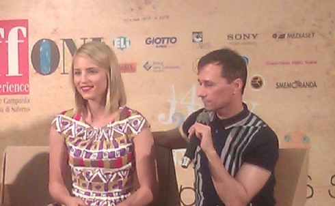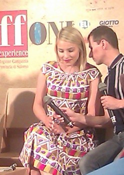 Felicità! Se il Giffoni Film Festival voleva dare un significato concreto al tema di quest’anno, la felicità per l’appunto, ieri ci è riuscito. Erano euforia, gioia di vivere, allegria, i sentimenti che si scorgevano negli occhi dei migliaia di gleeks, giunti da ogni parte dello Stivale, per incontrare anche solo per pochi minuti la loro beniamina. Ebbene sì, Dianna Agron è finalmente sbarcata in Italia. Un’accoglienza trionfale, quella ricevuta dall’interprete di Quinn Fabray, che è andata di pari passo con la sua affabilità. La star di Glee si è resa disponibile ad un fuoco incrociato di domande nei tre incontri (con i fan, con la stampa e con i giurati) ai quali ha preso parte.