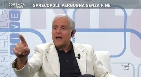 D’altronde, il tema della prima parte di programma è di quelli che scottano: “Sprecopoli: vergogna senza fine“, dedicato allo scandalo che sta coinvolgendo la regione Lombardia. In collegamento da Milano il governatore indagato Roberto Formigoni, mentre in studio con il conduttore ci sono Paolo Del Debbio, il presidente del Codacons Carlo Rienzi e il giornalista Piero Sansonetti. Il dibattito sembra procedere in maniera anche fin troppo pacata, finché non si finisce a parlare delle presunte vacanze di Formigoni e compagnia a spese di Pierangelo Daccò, l’intermediario d’affari in campo sanitario, già arrestato per il caso del San Raffaele.