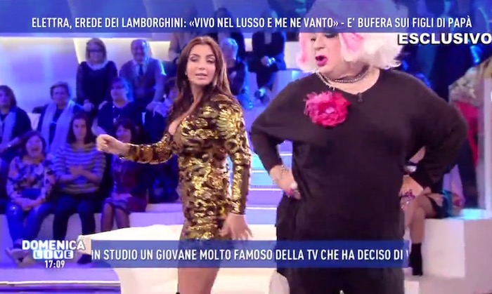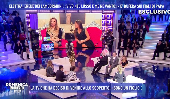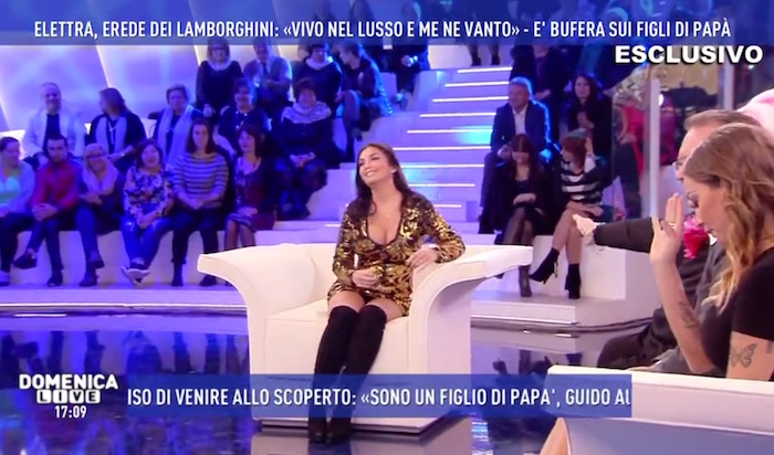 DOMENICA LIVE – OPINIONISTI SCATENATI CONTRO LA RICCANZA E LA MISE DELLA LAMBORGHINI. ELETTRA REPLICA: NON HO UN VESTITO DA ZOCCOLA (FOTO)