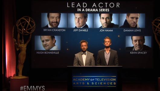 Il 22 settembre, giorno in cui si svolgerà la consegna dei Primetime Emmy Awards 2013 ai vincitori, intanto si avvicina. In attesa dell’evento, che sarà condotto per la seconda volta da Neil Patrick Harris (star di How I Met Your Mother) al Nokia Theatre di Hollywood per la CBS, siamo in grado di comunicarvi le nominations, appena annunciate da Aaron Paul e Neil Patrick Harris al Leonard H. Goldenson Theatre di Los Angeles.