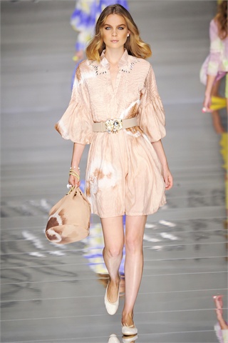 Per te abbiamo scelto un abitino della collezione P-E 10 di Blumarine d’ispirazione military-romantico. Il caftano, versione desert storm, è rivisitato in chiave romantica con le ampie maniche a ¾. Il tessuto color cipria in chiffon crépon arricciato, pieghettato, plissettato e goffrato, che regala leggerezza, evanescenza e fluidità, è caratterizzato da stampe camouflage ottenute con la tecnica del tie&dye. Conferiscono luce ed eleganza i ricami e le applicazioni di forma geometrica posti alla base del colletto alla coreana. La cintura con la fibbia-gioiello ornata da conchiglie e strass si abbina perfettamente ai sabot spuntati romantic-chic di Miu Miu. Come sempre il nostro look è corredato da un maquillage perfettamente abbinato ai colori del viso della nostra star, e concluso da un parfum di Etro dalla fragranza tenera e romantica: la sua freschezza leggermente talcata si sposa con le note amare e dolci della mandorla, della vaniglia e della frutta.
