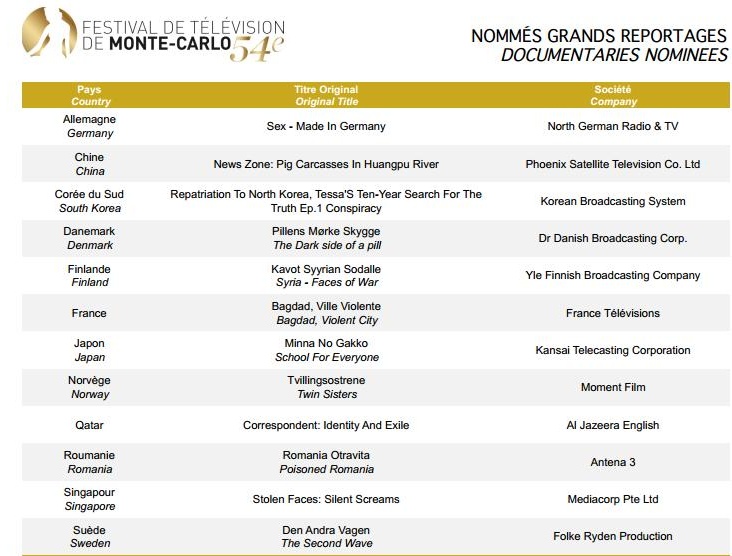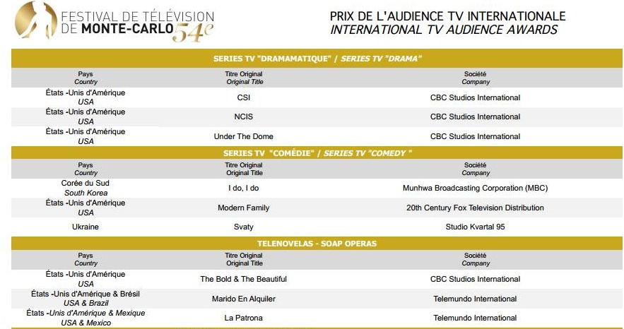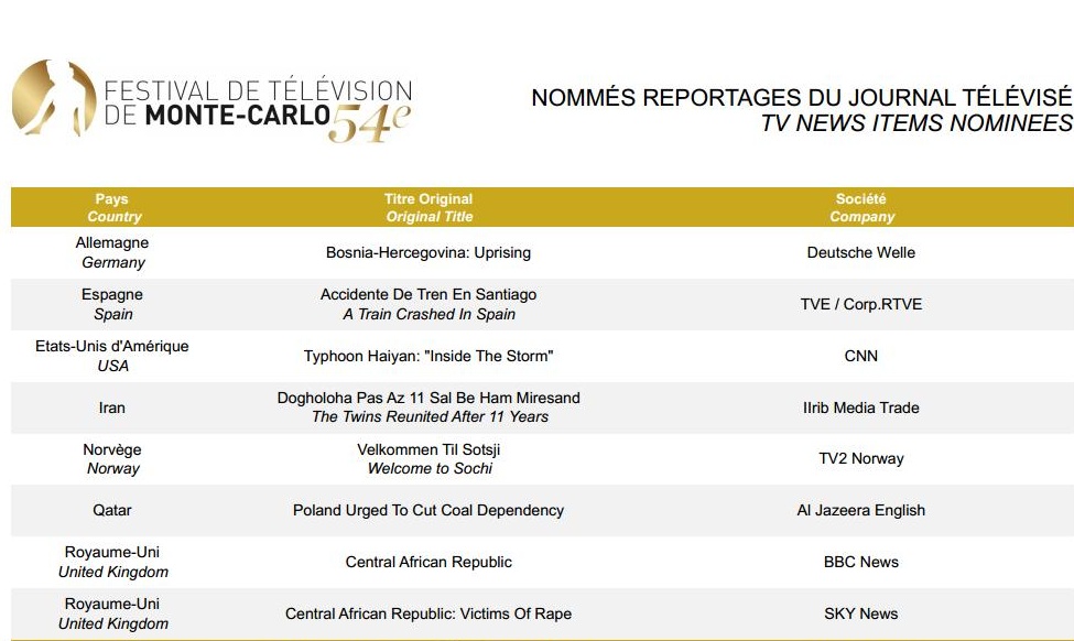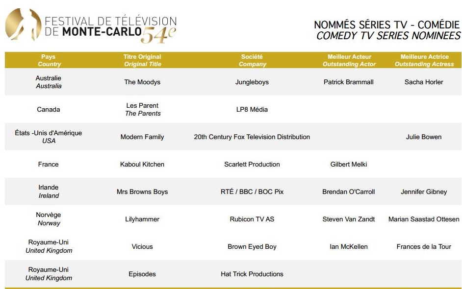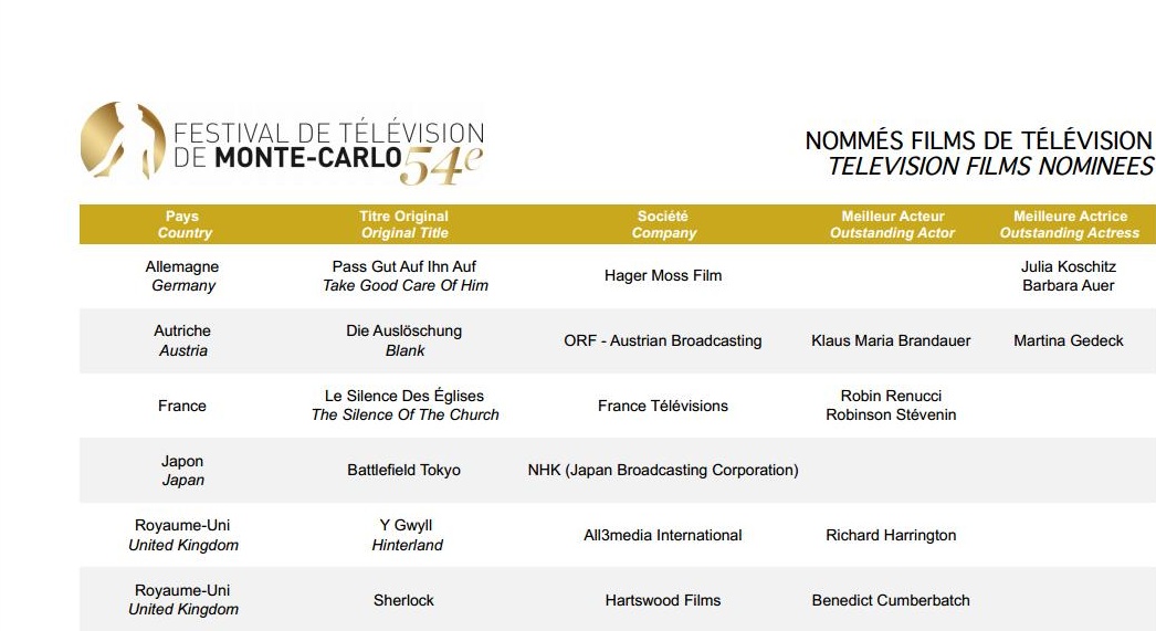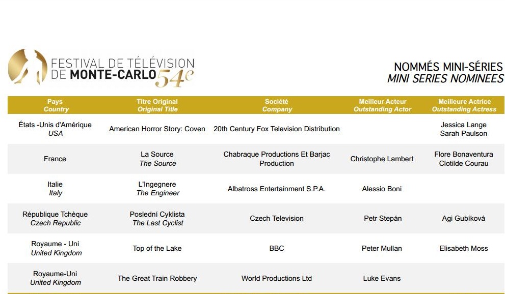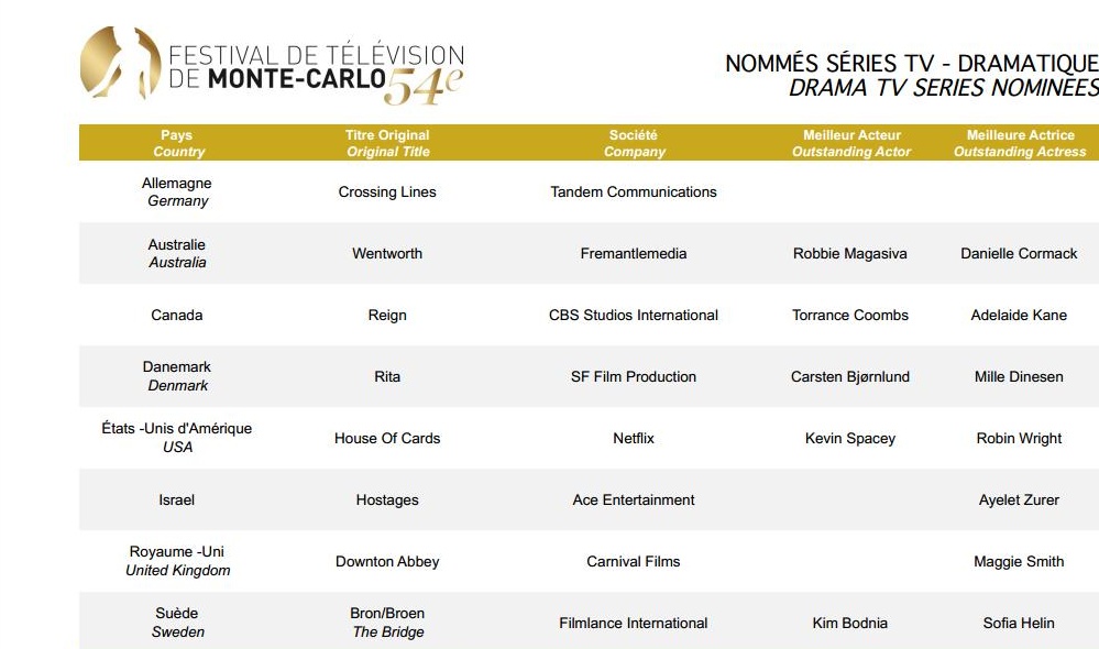Festival de Télévision de Montecarlo 2014 – Nomination