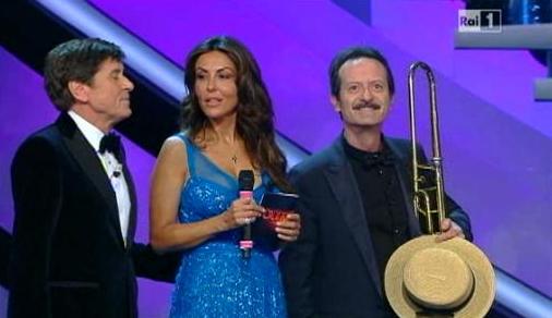 Ore 21.45: è il momento di Sabrina Ferilli che scende la scale dell’Ariston cantando con Gianni Morandi. La Ferilli ricorda il suo Sanremo con Pippo Baudo e la carrellata dei suoi cinepanettoni: “In Italia c’è questa cosa che vediamo come dei fenomeni tutti quelli che vengono dall’estero e sottovalutiamo i nostri“. Come non citare il suo storico calendario! Morandi: “E io ce l’ho ancora!“. Risponde lei: “Bene, allora tienitelo perchè quelle cose non si vedono più“. Poi si parla di televisione: “Io sono televisione dipendente, e quella italiana è una delle migliori. All’estero è molto più povera. Spesso mancano degli strumenti per crescere, si parla per mesi degli stessi argomenti di cronaca“. Una lunga intervista che non sa di niente, il tutto finisce con la promozione della miniserie in onda prossimamente su Rai1. Poi la Ferilli torna a cantare con Morandi accompagnati da Rocco Papaleo che finge di suonare il trombone.