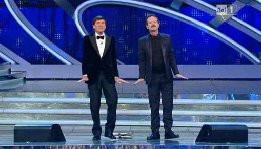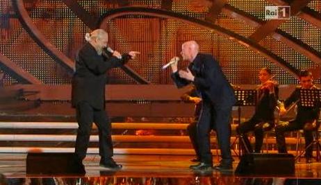 Ore 20.53: Morandi apre il televoto dopo aver ricordati i codici di tutti i cantanti. Poi l’ingresso di Rocco Papaleo con cappotto e valigia al seguito. Non si tratta più di salvare il Festival ma l’Europa. Papaleo portà sobrietà. Poco dopo anche Morandi si presenta con il cappotto e insieme recitano la formula: “alza lo share, abbassa lo spread“.