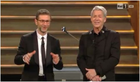 22.49: “Sento l’attesa”. Fabio Fazio euforico nell’accogliere sul palco dell’Ariston – anzi, lo va proprio a prendere – Claudio Baglioni. L’artista si cimenta in un medley dei suoi più grandi successi. E non sono pochi. Quasi un quarto d’ora di show targato solo Baglioni; l’Ariston in piedi. Fazio gongola: “Mi dicono che dalla sala stampa ci sia un tripudio tutto per te”. E lui (ironico?): “Non è un buon segno allora”. Poi, con due caschi da operai in mano (uno per l’amico Fabio), ricorda a tutti quali sono i valori importanti nella vita.