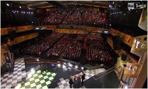 20.38: Anteprima di Pif, che si aggira attorno all’Ariston per raccogliere solidarietà nei confronti di Gianfranco Agus, storico inviato de La Vita in Diretta che, nonostante i tanti Festival che l’hanno visto lì sul tappeto rosso tra interviste e commenti, non ha mai assistito dal vivo ad una serata all’interno del teatro. E poi scruta Fazio a pochi attimi dall’esordio di ieri sera… quando il sipario ha concesso il “pessimo scherzo”. Che non è stato l’unico della serata. Sanremo e Sanromolo torna domani sera. Pubblicità.
